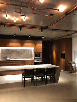 Desenhadas sob medida para cada espaço, com lâmpadas vintage que podem ser dimerizáveis; o estilo industrial da peça e a elegância do cobre criam uma harmonia perfeita. Elementos relacionados: metal e fogo